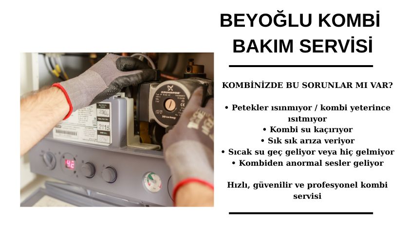 Beyoğlu bölgesinde kombi servisleri hızlı ve planlı şekilde yapılır. Her marka ve model kombi için uygun servis çözümleri sunulur. Düzenli servis sayesinde ani arızalar önlenir. Kombi ömrü uzatılır. Isınma problemleri minimum seviyeye indirilir. Kombi sessiz ve stabil çalışır. Enerji tasarrufu sağlanır. Kullanıcı yapılan işlemler hakkında bilgilendirilir. Servis sonrası kontroller tekrar yapılır. Müşteri memnuniyeti her zaman önceliklidir.